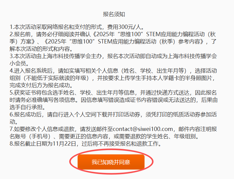 3. 仔细阅读“报名须知”,了解相关注意事项后,点击“我已知晓并同意”,进入报名系统。