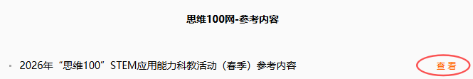 2.找到“2026年‘思维100’STEM应用能力科教活动(春季)参考内容”,点击“查看”,即可查看本次活动的参考内容。