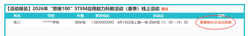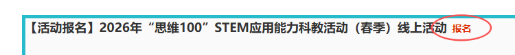 3.找到“2026年‘思维100’STEM应用能力科教活动(春季)线上活动”,点击“报名”。